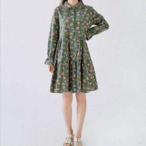 [오너클랜]인기상품 플라워 패턴 쉬폰 카라 원피스 허리 프릴 봄 가을 드레스 [WFLHIPG_260208]