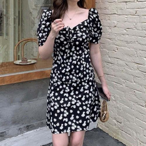 플라워 데이트룩 여름 원피스 여성 반팔 미니 쉬폰
