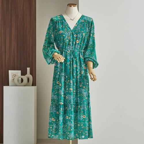 [오너클랜]인기상품 플라워 프린트 긴팔 쉬폰 원피스 여성용 [WFLNGLG_260204]