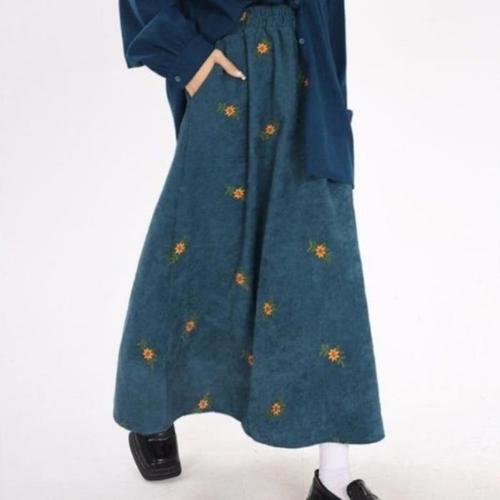 [옷자락]여성 겨울 코듀로이 플라워 롱 스커트