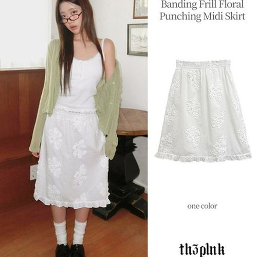 더핑크 / 포안 밴딩 프릴 플라워 펀칭 미디 스커트