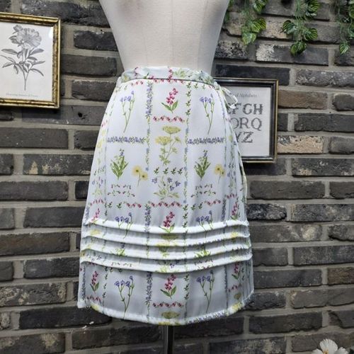 플라워 프린트 허리 리본 스커트