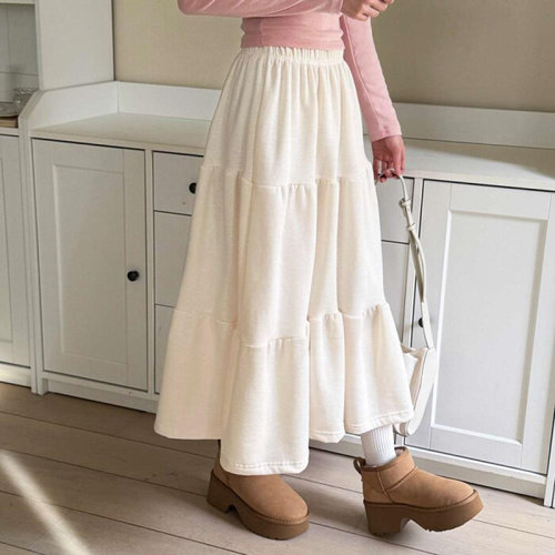옷자락 / 여자 캉캉 밴딩 기모 겨울 플레어 롱 치마 스커트