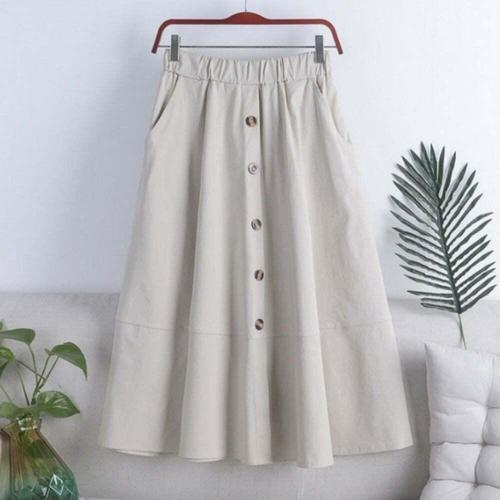 [오너클랜]인기상품 롱 플레어 스커트 허리밴딩 단추 포인트 여성용 치마 [WFLKZN6_260304]