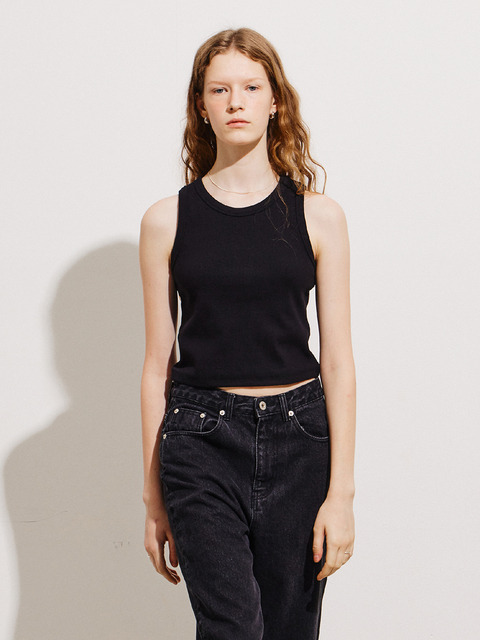 [노티아] 리브드 슬리브리스 크롭 탑 - 레드