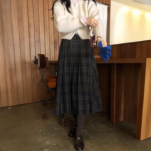 [에이치플러스몰]바이어니나 스커트 롱스커트 플리츠스커트 체크스커트