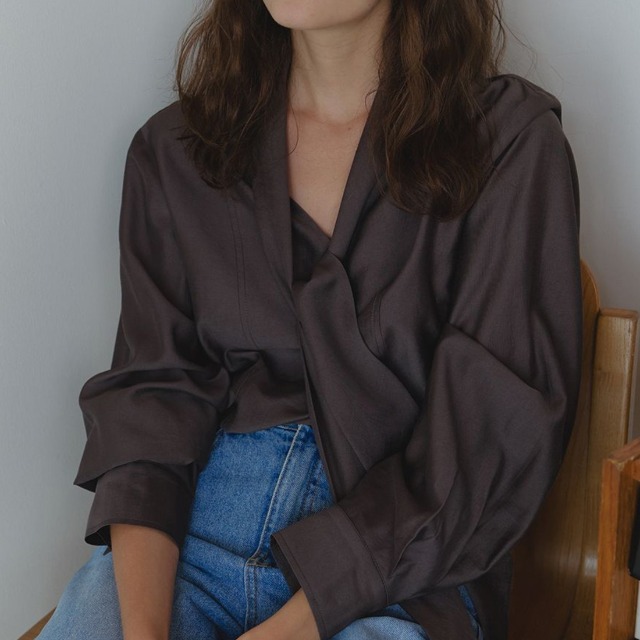 [SATIN] 벨벳 플리츠 카라 블라우스 O254T203