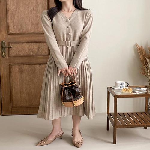 [에이샵][에이샵] 플리츠 벨티드 니트 원피스_ASOP074W25