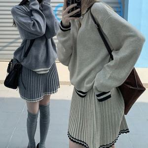 [셀러허브_여성트랜드패션]긴팔 니트 플리츠 스커트 2종 상하복 투피스세트 30대