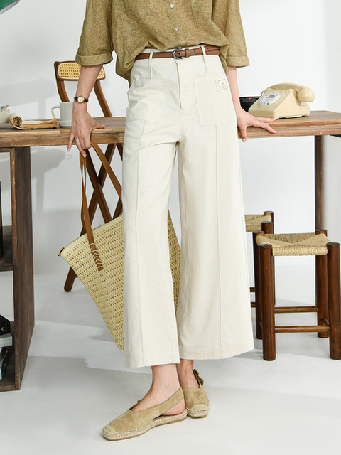 [모노무드]모노무드 여름 캐주얼 여자 린넨 바지 피그먼트 와이드 핏 편안한 팬츠