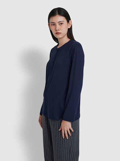 [자주 라이프웨어] [JAJU/자주] 여 피치스킨 긴팔 파자마 티셔츠_네이비