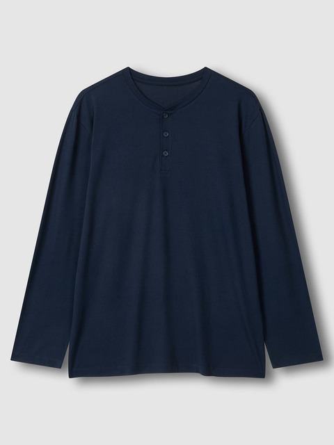 [자주 라이프웨어] [JAJU/자주] 남 피치스킨 긴팔 파자마 티셔츠_네이비