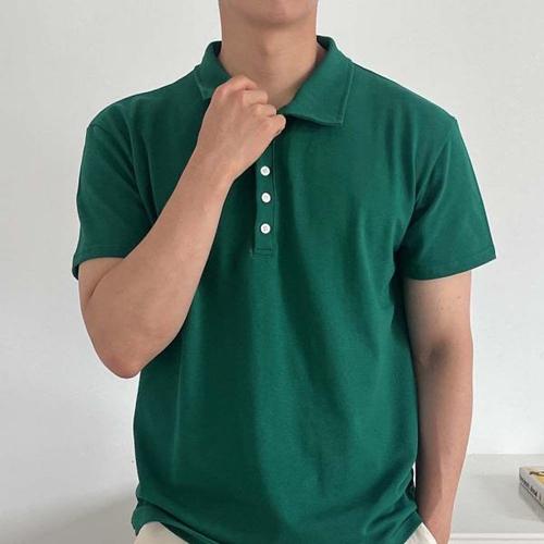 [다잇템]남자 피케셔츠 초록티 버튼 카라넥 반팔 티셔츠