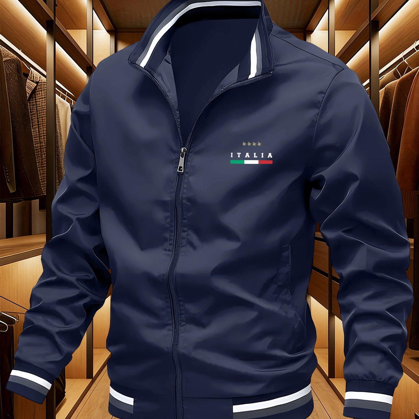 TEMU 미국 스타일 트렌디 남성 베이스볼 자켓, 스타 장식 삼색 프린트로 인기 있는 , 가을 겨울 캐주얼 아웃도어 코트, 리브드 디테일