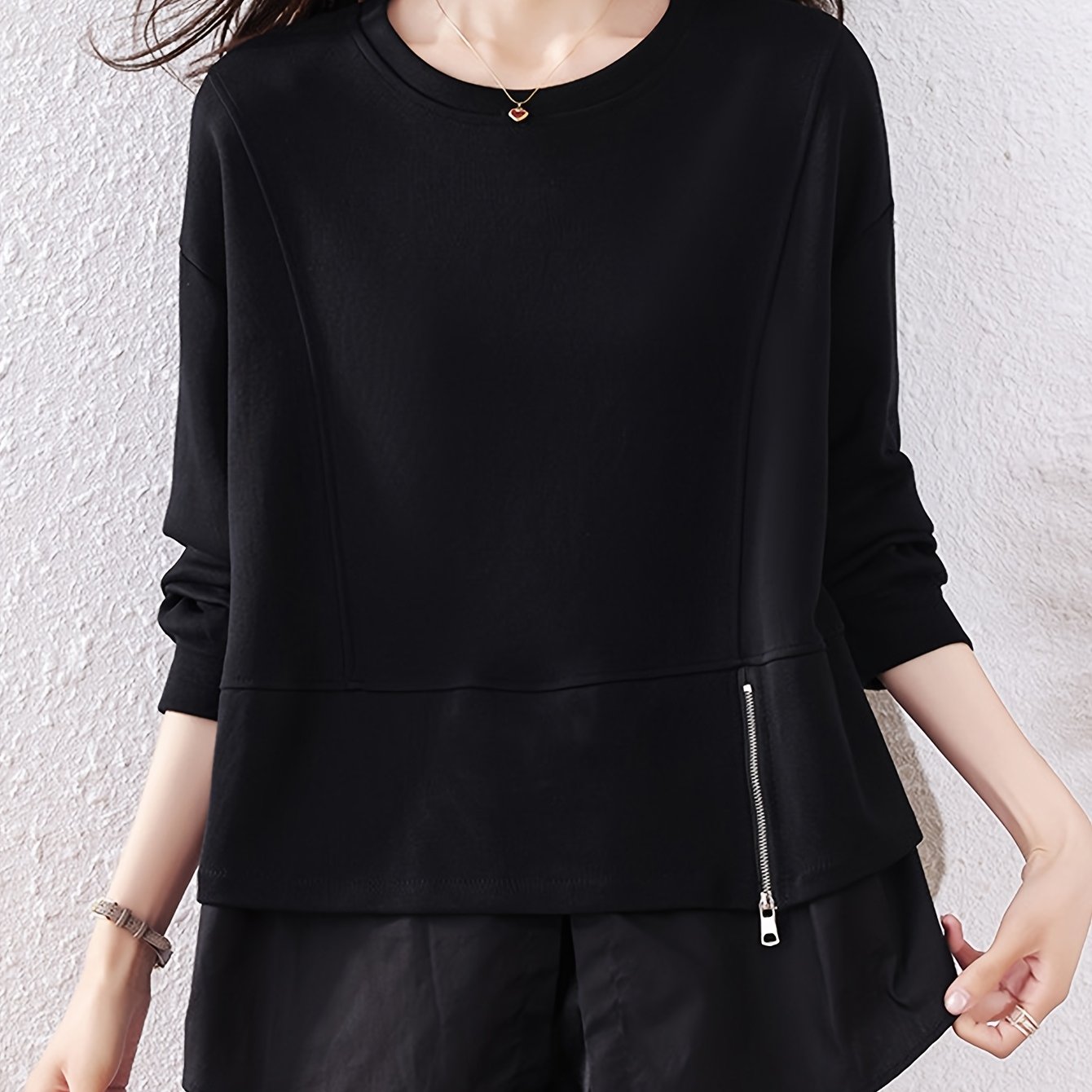 TEMU 플러스 사이즈 여성용 비정형 스웨트셔츠, 2026 가을/겨울, 유럽 스타일, 독특하고 개성 있는 상의, 긴소매 베이스 레이어 셔츠
