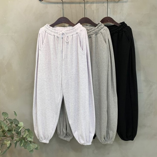 [옷자락]여성용 심플 핀턱 조거 팬츠 밴딩 일자핏 스포츠팬츠