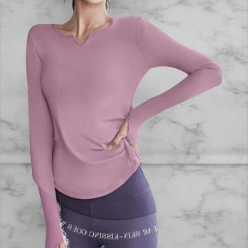 [골드스마일]필라테스 긴팔 셔링 티셔츠 슬림핏 브이넥 요가 절개