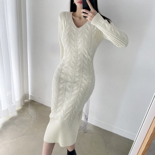 원피스 겨울원피스 브이넥니트 겨울 브이넥 여성용 롱치마 니트 롱 슬림핏
