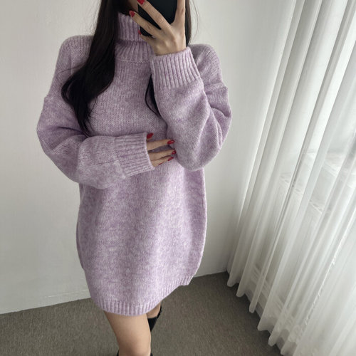 글램핏 / 겨울 니트 목폴라 도톰 루즈 오버 핏 미니 원피스 5