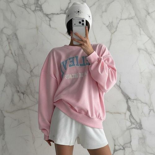 [미라클세븐]여성 봄철 개강룩 배색 레터링 오버사이즈 핑크 맨투맨