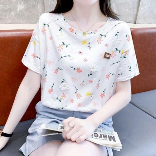 [오너클랜]인기상품 핑크 라운드넥 여성용 플라워 패턴 반팔 티셔츠 [WFLLB87_260304]