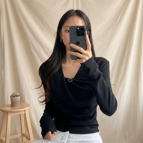 [다잇템]여성 옆셔링 드레이프 슬림핏 핑크색 티셔츠