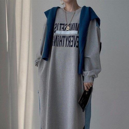 POMTOR 가을 겨울 긴팔 원피스 루즈핏 빅사이즈 니트원피스