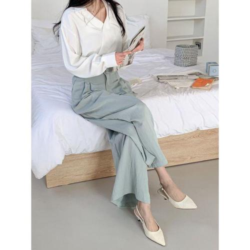 [옷자락]여자 가을하객 편한 핀턱 핑크정장팬츠 넓은 슬랙스