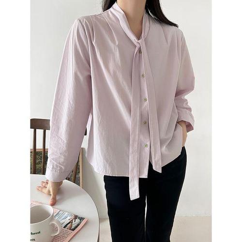 [샵앤]여성 리본타이 어깨 핀턱 베이직 정장 블라우스 21DS-WBL-4148-핑크