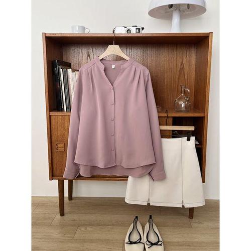 [샵앤]국산 여성 오픈V넥 정장 사선 앞셔링 블라우스N REI-WBL-4137-핑크