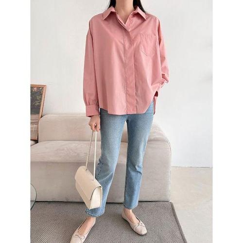 [샵앤]여성 카라넥 루즈핏 정장 오피스룩 면 남방 셔츠 CAT-WBL-4165-핑크