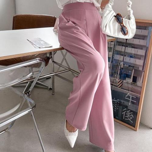 [다잇템]여자 핑크정장팬츠 핀턱 와이드 스판 슬랙스