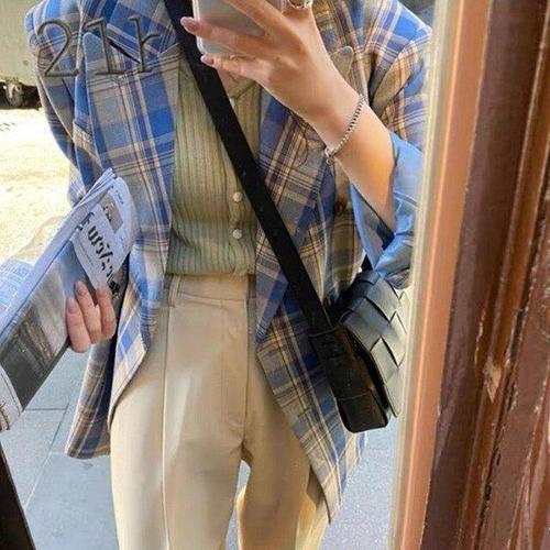 [핑크엘리제]오버핏 데일리 포인트룩 야타닌체크자켓