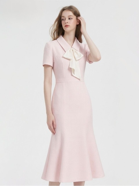 [트위디아] 에밀리 리본 트위드 머메이드 롱 원피스 핑크