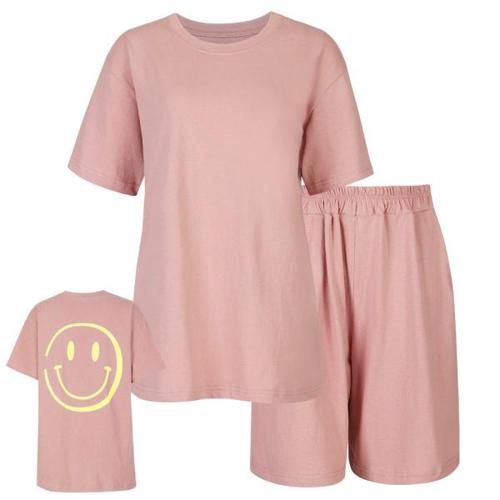 [샵앤]스마일 국산 면 트레이닝 밴딩 반바지 상하세트 DAI-SET-0828-핑크