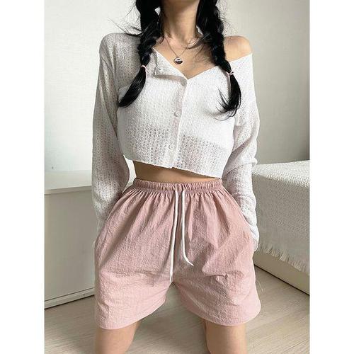 샵앤) 바스락 밑단 레이스 트레이닝 반바지 YZ-WPT-12123-핑크