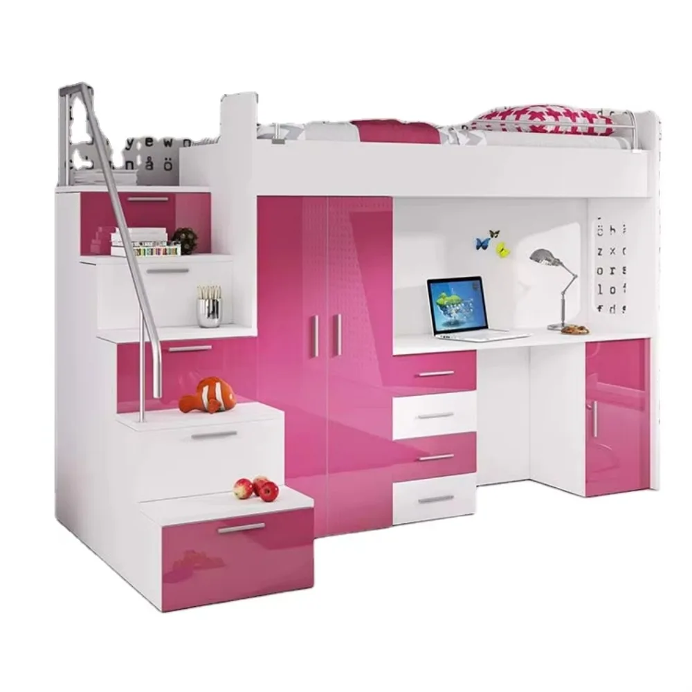 장식 수납 어린이 침대 프레임 디자인 모던 벙커 침대 원목 일본식 화이트 조명 침대 어린이 가구