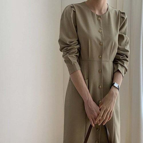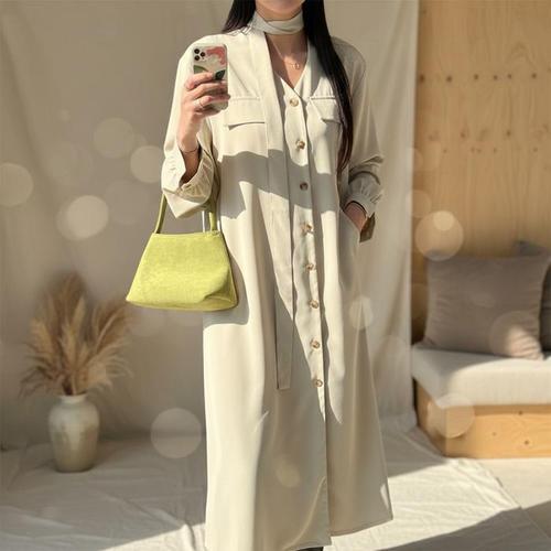 [다잇템]여성 롱 SS 하객용 브이넥 2WAY 단추 원피스 (45972071)