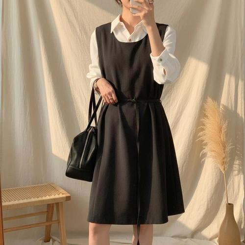 LnD 클래식 포멀라인 셔츠 원피스 허리벨트 포함 하객룩 여성 롱원피스