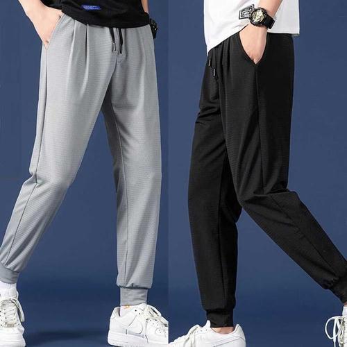 아이스 실크 남성 여름용 얇은 속건 스포츠 루즈핏 통기성 긴 바지 캐주얼 트라우저 청년 활동 스타일 베이직 컬러