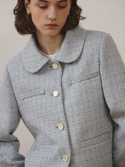 [다잇템]여자 하늘색 라운드넥 슬림 크롭트위드 숏자켓