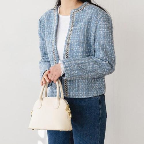 [신상오픈런]오픈 트위드자켓 라운드넥 하늘색 펄체크 트리밍 (30486957)