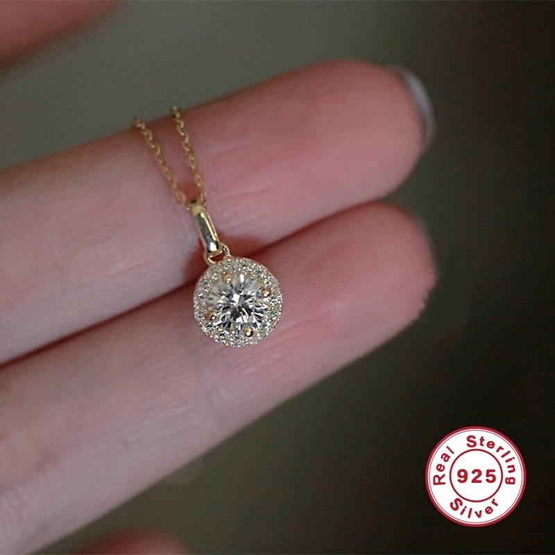TEMU 스털링 실버 프렌치 스타일 클래식 골든 스타리 스카이 컴퍼스 합성 지르코니아 펜던트 목걸이 여성용, 18K 골드 도금 라운드 풀 디자인, 우아하고 고급스러운 웨딩 약혼 주얼리 칼라본 체인, 데일리 웨어 및 파티 선물용, 우아한 디자인,고급스러운 스타일,내구성 있는 목걸이,고품질 펜던트,여성용 주얼리, 목걸이,여성 패션,신부 주얼리