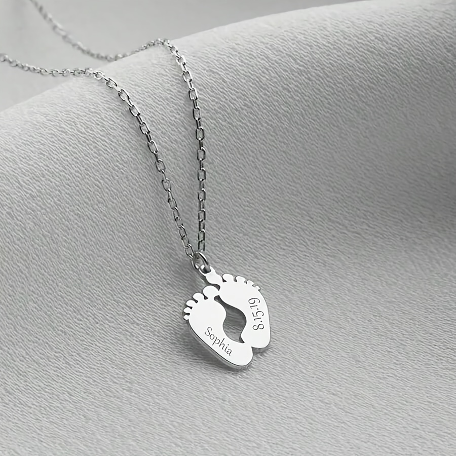 TEMU 개인 맞춤 각인 이름 및 날짜 발 펜던트 목걸이 - 조절 가능한 연장 체인, 18K 금도금 스테인리스 스틸, 우아하고 심플한 디자인, 샤워, 크리스마스, 새해 선물용, 발 주얼리, 일상 액세서리, 골드 도금 펜던트