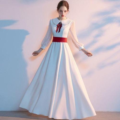 [교복몰]화이트 진주디테일 맥시 라운드카라 원피스 경성의상