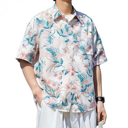 키밍 캐주얼 남자 하와이안 셔츠 플라워 커플 남방