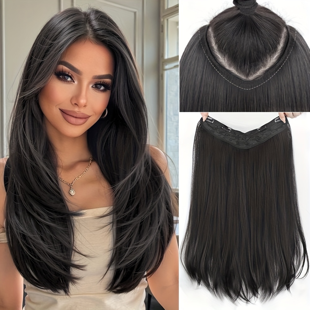 TEMU 24인치 인비저블 헤어 익스텐션 여성용 롱 V형 헤어 익스텐션 3/4 풀 헤드 클립 인 헤어 익스텐션, 볼륨 추가용, 4개의 안전 클립, 합성 천연 소프트 인비저블 브라운 헤어 익스텐션, 데일리 파티용