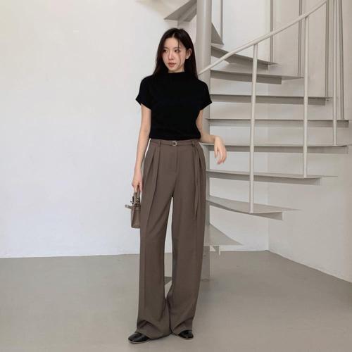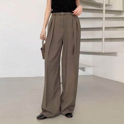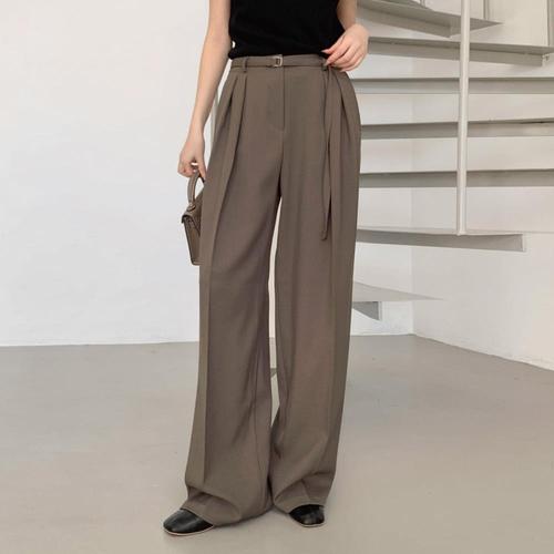 [다잇템]여성 넓은 하이웨이스트 핀턱 혁대 슬랙스