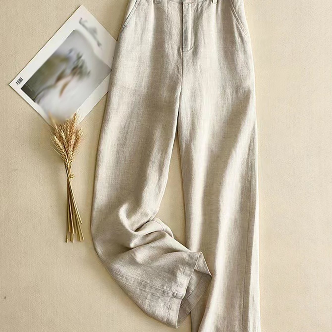 TEMU 여성용 하이웨이스트 면 마 와이드 팬츠 봄 여름 얇은 일자 슬랙스 캐주얼 팬츠 데일리 편안 통기성 프릴 밴딩 허리 린넨 긴 바지