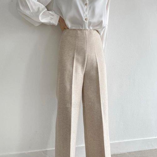 [옷자락]여자 와이드핏 하이웨이스트 스판 정장 슬랙스_4